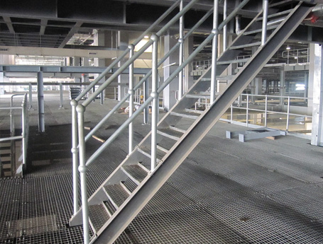 化工廠用鋼格板 鋼格板是用承載扁鋼和橫桿按照一定的間距進(jìn)行正交組合,通過焊接或壓鎖加以固定的開敞式鋼構(gòu)件;橫桿一般采用經(jīng)過扭絞的方鋼、也可采用圓鋼或扁鋼,材質(zhì)分為碳鋼和不銹鋼鋼格板主要用來做鋼結(jié)構(gòu)平臺(tái)板、溝蓋板、鋼梯的踏步板、建筑物吊頂?shù)取? 簡(jiǎn)介 ···